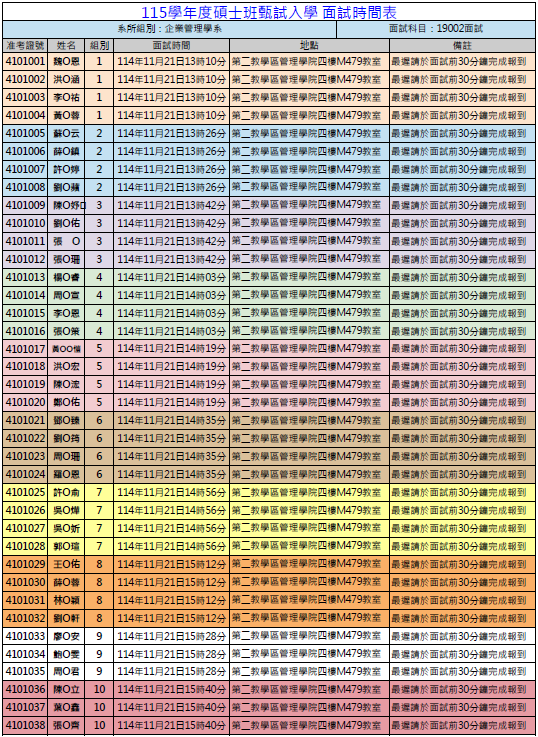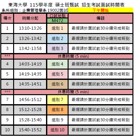 (一) 本階段採團體面試方式,每位考生必須完成一場面試,會由本系工作人員指引,面試時間請詳參閱附加檔案。